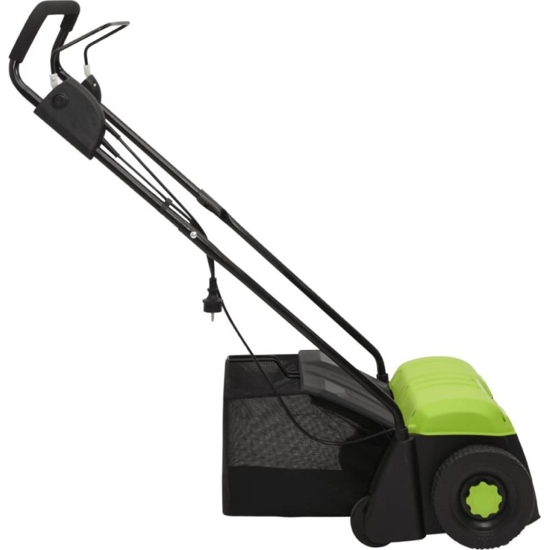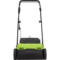 - Łatwe manewrowanie: wertykulator ma wygodny uchwyt ułatwiający manewrowanie. Dwa koła znacznie ułatwiają jego poruszanie się po różnych rodzajach podłoża.