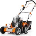 - Z drucikami - aerator - grabienie trawy , zbieranie liści, delikatne napowietrzanie gleby. Wydajny silnik o mocy 4,5 KM i optymalnym momencie obrotowym z łatwością radzi sobie z każdym rodzajem trawnika. Urządzenie posiada regulację głębokości pracy w zakresie od +5 do -15 mm. Wertykulator posiada centralną regulacja wysokości, dzięki czemu możemy ustawić poziom roboczy z bardzo dużą dokładnością dostosowując go do konkretnego trawnika.