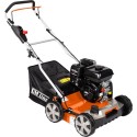 Wertykulator spalinowy OLEO MAC OM-LINE WE40L wyposażony jest w centralną regulacje głębokości roboczej od 0 do 28mm. Wertykulator posiada kosz o pojemności 35l, łożyskowane koła oraz bardzo mocny silnik o mocy prawie 5,5 KM.