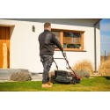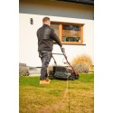 Urządzenie charakteryzuje się szerokością roboczą wynoszącą 38 cm, co umożliwia szybkie i równomierne wertykulowanie dużych powierzchni trawnika. To doskonałe rozwiązanie dla osób, które cenią sobie efektywność i oszczędność czasu podczas pielęgnacji ogrodu.