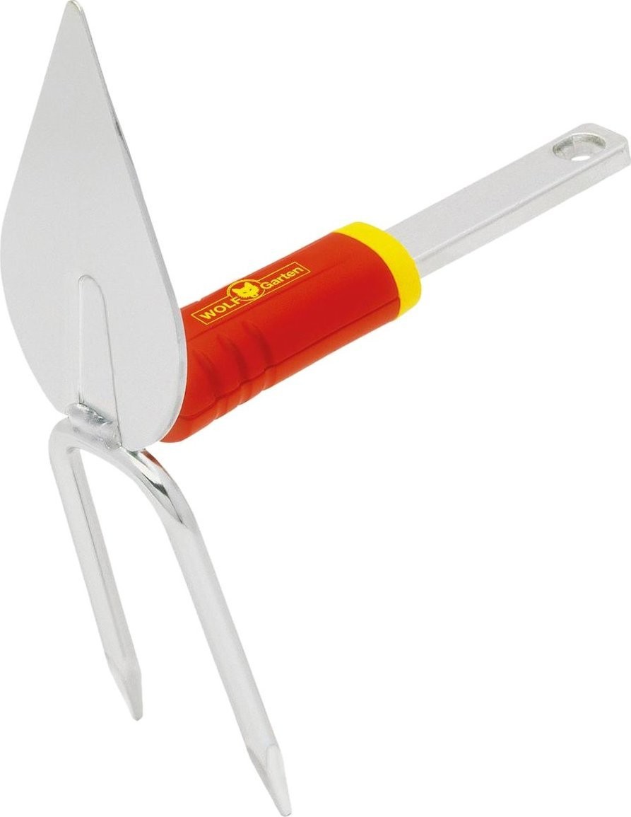 Motyka podwójna IM-M WOLF-Garten, idealnie sprawdza się jako narzędzie 2w1 do spulchniania gleby, robienia małych bruzd między grządkami oraz obsypywania roślin za pomocą ostro zakończonej haczki.