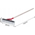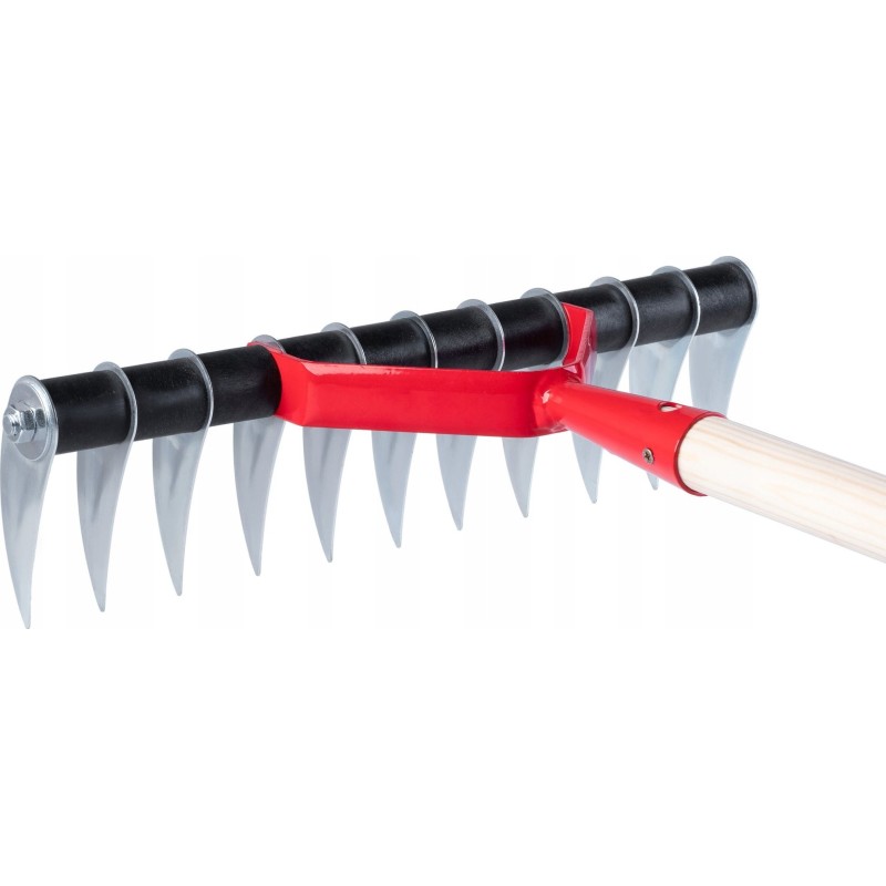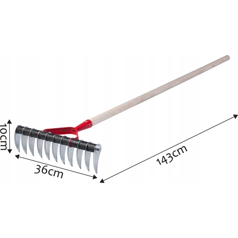 - Długi, drewniany trzonek - daje możliwość wygodnego użytkowania - trzon nie wyślizguje się z dłoni i nie obciera dłoni podczas dłuższych prac w ogrodzie