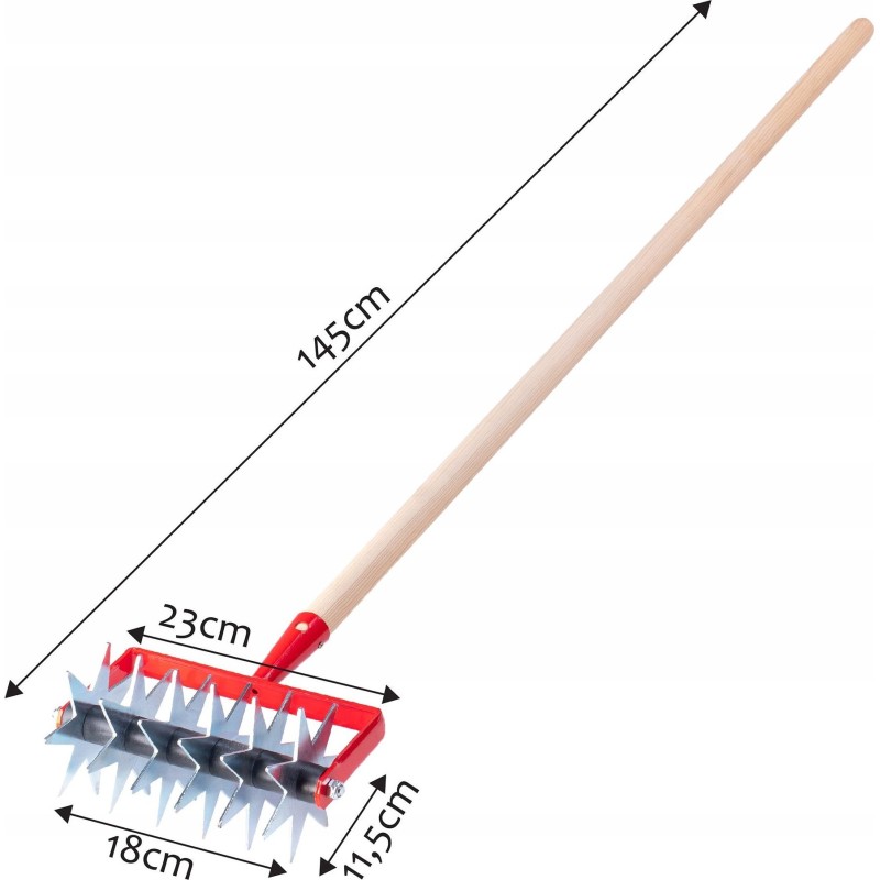 Dzięki wyposażeniu narzędzia w ostre gwiazdki możliwe staje się bezproblemowe napowietrzenie gleby i pozbycie się nieestetycznych i szkodliwych chwastów ze swojej działki. Za pomocą spulchniacza możesz przygotować glebę pod zasadzenie warzyw czy krzewów, a także użyźnić glebę w celu zasadzania nowego kwiatu.