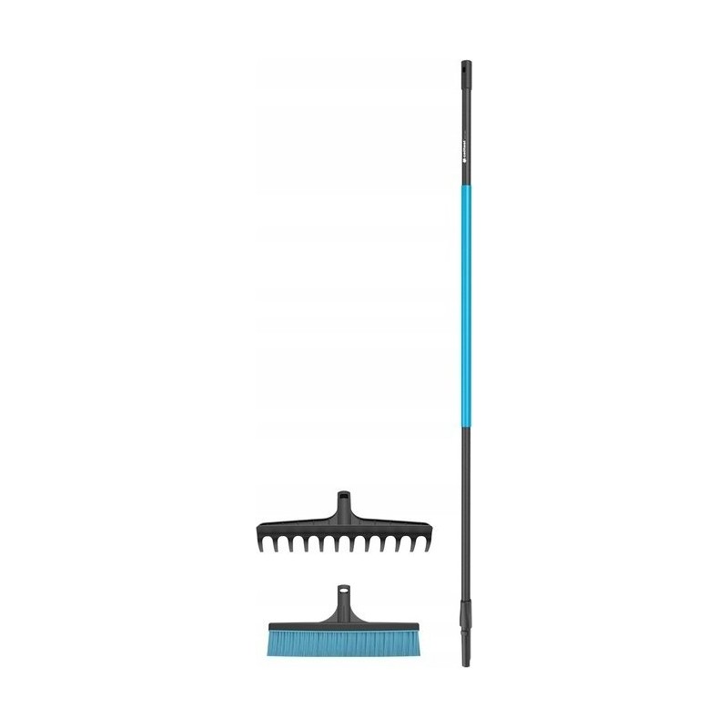 Wielezadaniowy zestaw od Cellfast przeznaczony do zamiatania ścieżek, schodów, podjazdów, dzięki wymiennej końcówce sprawdzi się również do grabienia liści, trawy i innych odpadów ogrodowych, pełni funkcję zgarniacza, może być wykorzystany do przenoszenia liści.