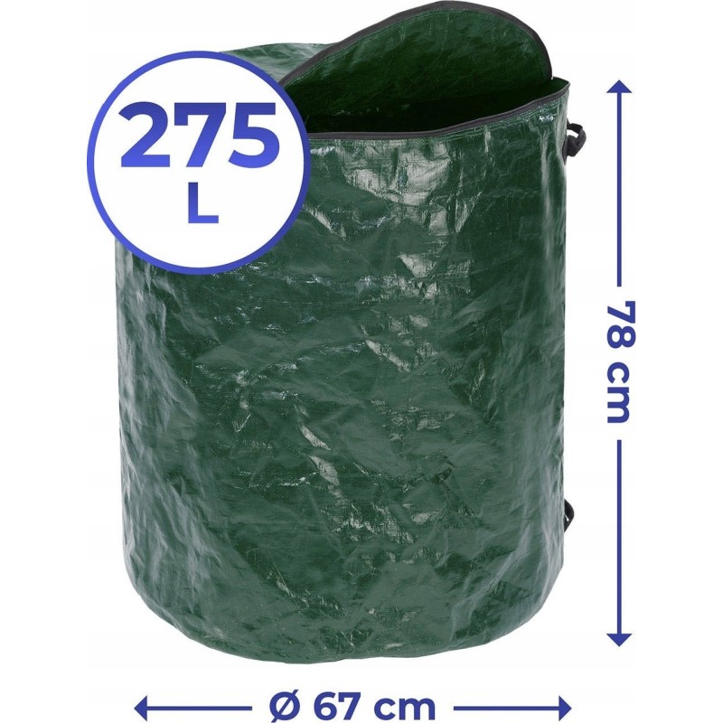 Praktyczna torba o dużych rozmiarach będzie nie tylko wygodnym dodatkiem do Twojego ogrodu, ale również przydatnym przedmiotem w domu! Wielokrotnego użytku worki to idealne rozwiązanie, które przyczynia się do ochrony naszej planety. Podczas prac ogrodowych, takich jak przycinanie drzew i krzewów, czy sprzątanie liści, na pewno przyda Ci się nasza wielka torba ogrodowa. Pojemność worka wynosi aż 275 litrów.