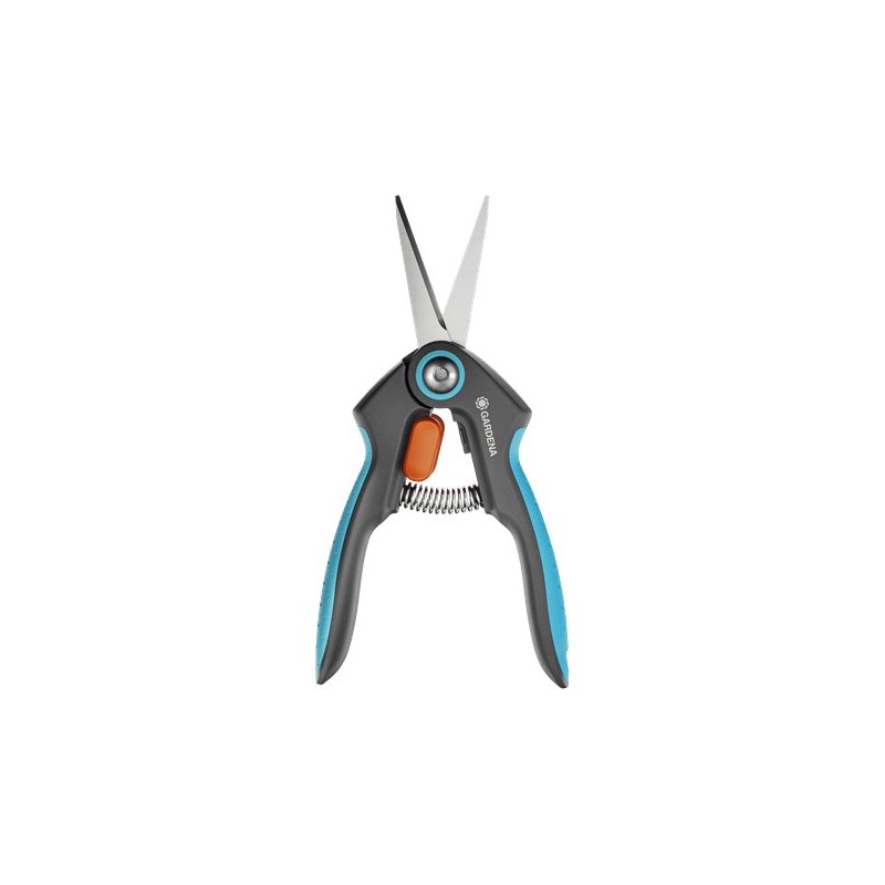 Nożyczki GARDENA FreshCut wyróżniają się wąskimi, precyzyjnymi ostrzami ze stali nierdzewnej, co zapewnia ich trwałość oraz efektywność w codziennym użytkowaniu.