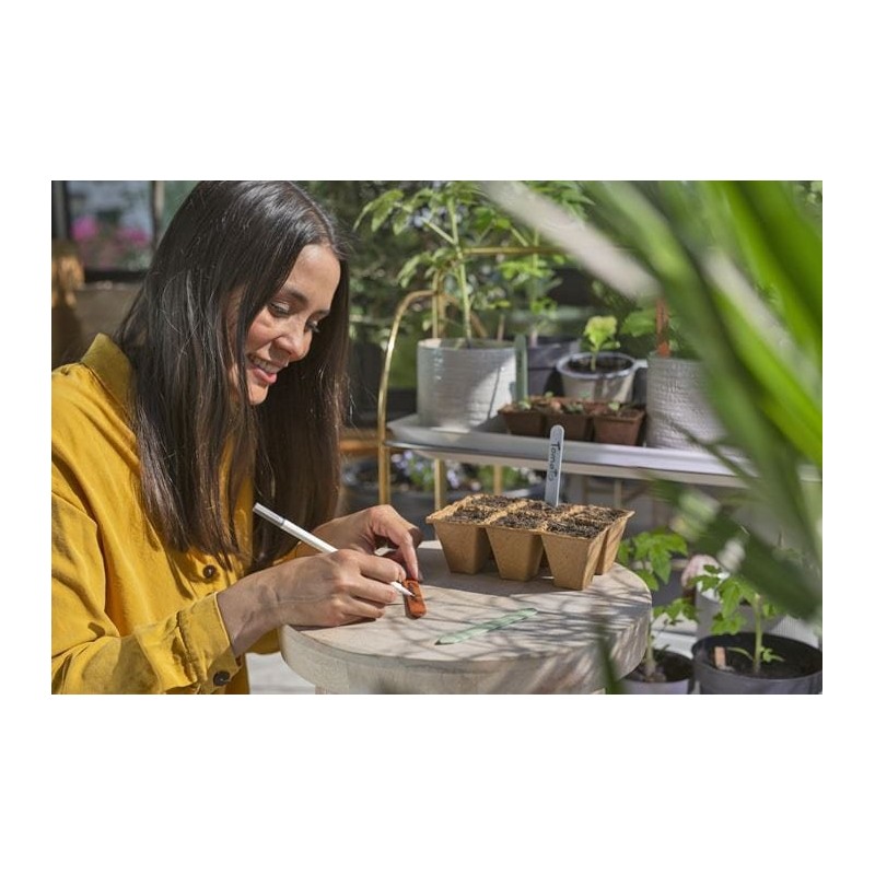 W skład zestawu wchodzą trzy oznaczniki ziół, które można etykietować i projektować, co sprawia, że są doskonałe do oznaczania siewek, ziół lub kwiatów, dodając osobisty akcent do Twojego ogrodu.
