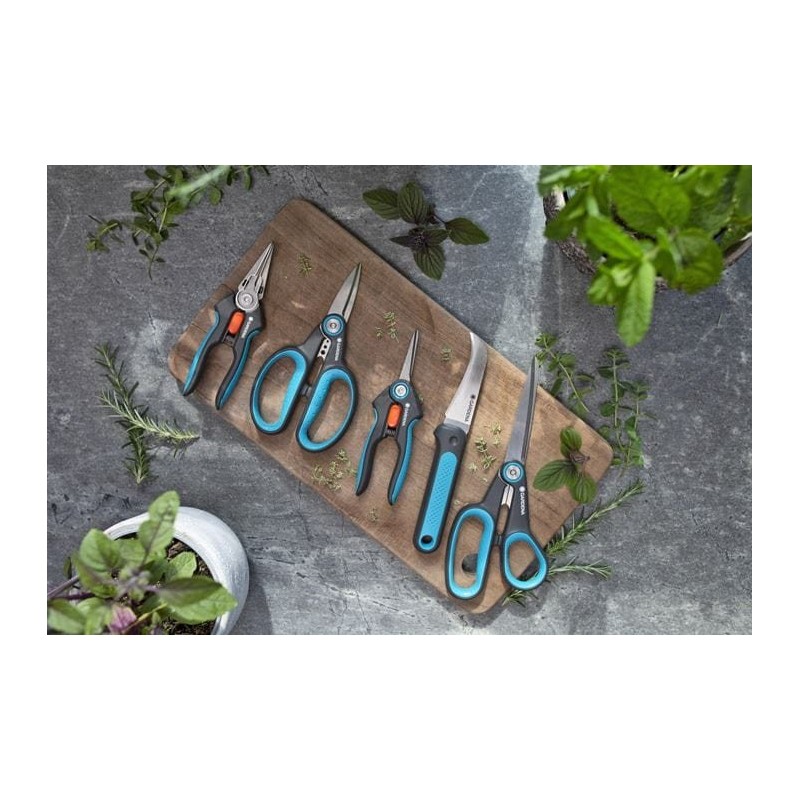 Zestaw FreshCut od GARDENA to doskonałe narzędzie dla miłośników ogrodnictwa, które łączy w sobie precyzyjne cięcie z kreatywnością. Idealne do zbierania świeżych ziół, jagód oraz przycinania kwiatów, te nożyczki gwarantują czyste cięcia, nawet w trudno dostępnych miejscach.