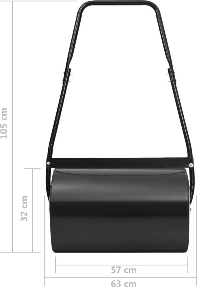 Kolor: czarny Materiał: stal Szerokość całkowita: 63 cm Szerokość walca: 57 cm Średnica: 32 cm Pojemność walca: 50 L Waga: 9,55 kg