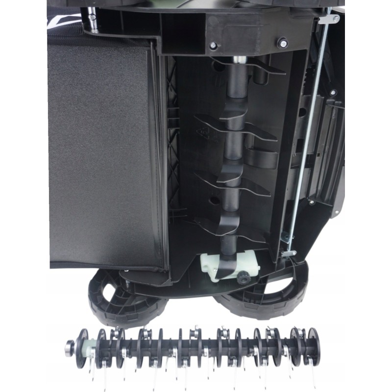 Obudowa wykonana z wysokiej jakości tworzywa łączy lekkość z dużą odpornością i trwałością. Niewielka waga maszyny, wynosząca zaledwie 12,8 kg gwarantuje doskonałą zwrotność i łatwość prowadzenia. Rozwiązanie to z pewnością będą chwalić kobiety, które niechętnie, jeśli w ogóle, podejmowały się pracy ciężkim aeratorem spalinowym.