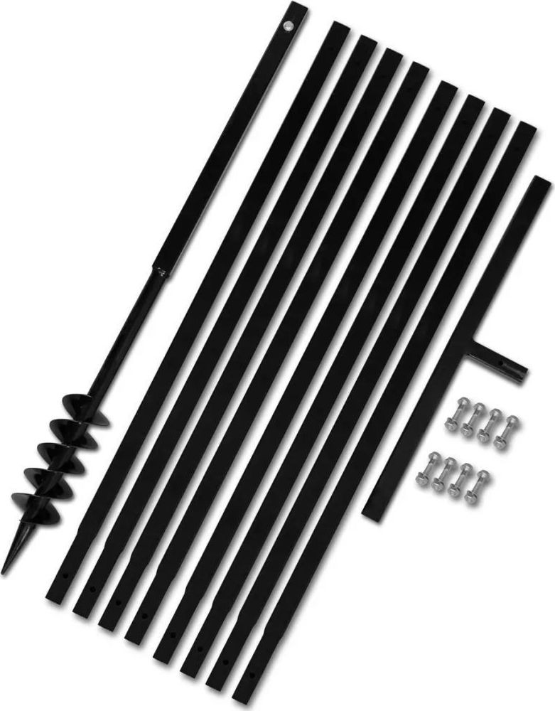 Dostawa obejmuje wiertło gruntowe, uchwyt, 8 rur przedłużających i śruby.