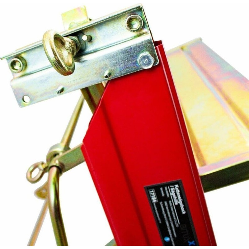 Waga: 11 kg Maksymalne obciążenie: 120 kg Maksymalna średnica pnia: 25 cm Długość ochrony miecza: osłona łańcucha z urządzeniem mocującym ok. 45 cm Wymiary złożonego traka: około 81 x 20 x 100 cm (dł / szer / wys) Wymiary piłokształtnego: ok. 81 x 72 x 90 cm (dł / szer / wys) Materiał: chromowana stal ocynkowana
