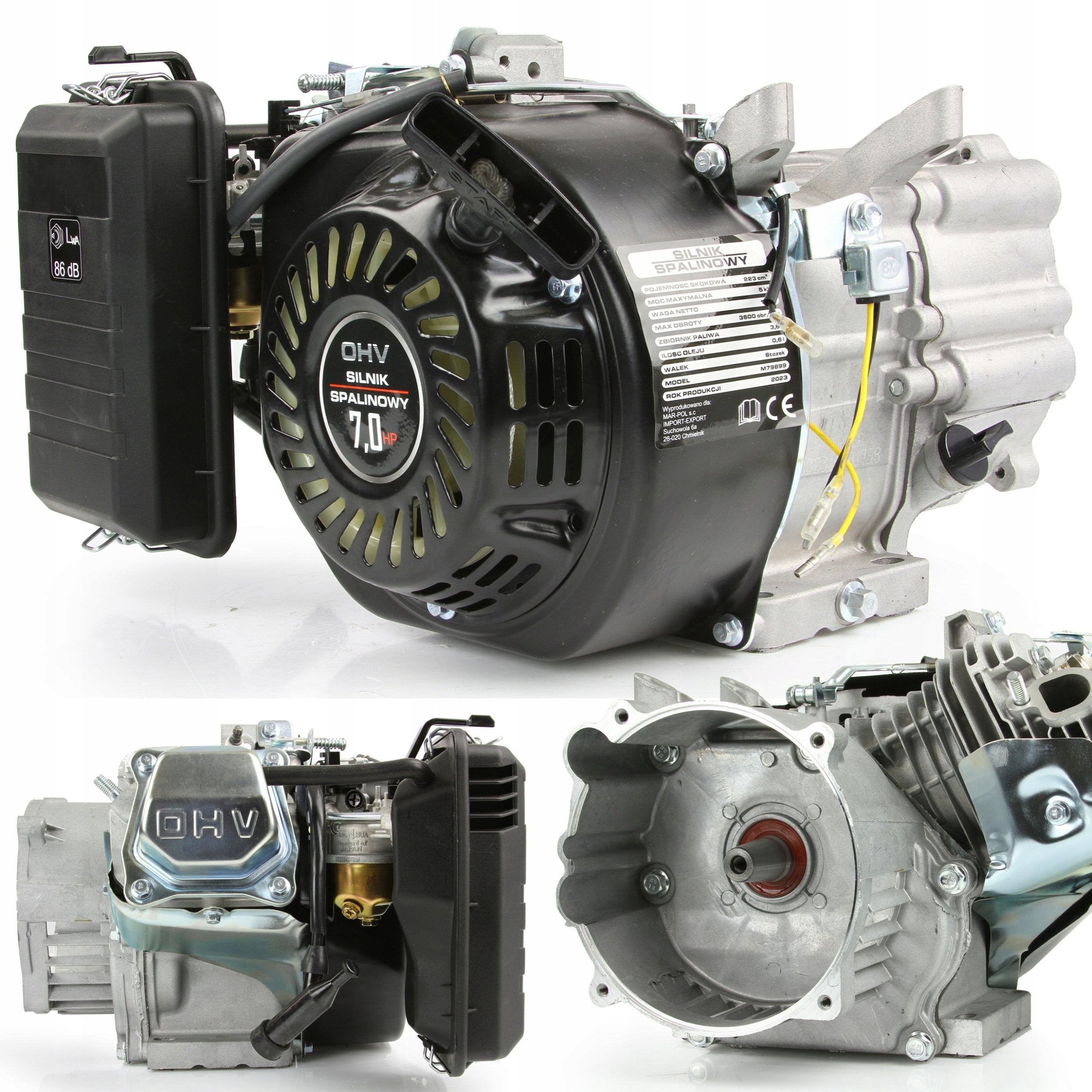Silnik Mar-pol M79894 wyróżnia się mocą 6,5HP, co czyni go idealnym wyborem do różnorodnych zastosowań. Jego maksymalne obroty wynoszą 3600 obr/min, a obroty na wałku mieszczą się w zakresie 500 - 1800 obr/min. Dzięki tym parametrom silnik doskonale sprawdzi się w intensywnym użytkowaniu, zapewniając nieprzerwaną moc tam, gdzie jest to najbardziej potrzebne.