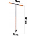 Odpowiednia budowa świdra umożliwia swobodne poruszanie się w trakcie pracy i całkowitą kontrolę nad narzędziem. Dołownik posiada długi, metalowy trzonek, który pozwala na utrzymanie wyprostowanej postawy ciała, bez nadmiernego obciążania pleców.