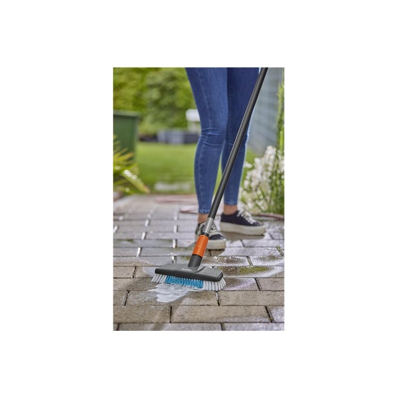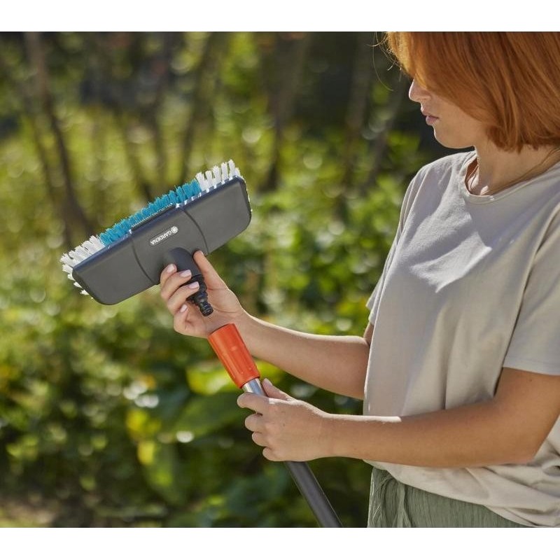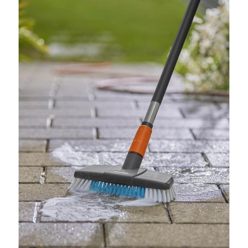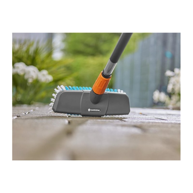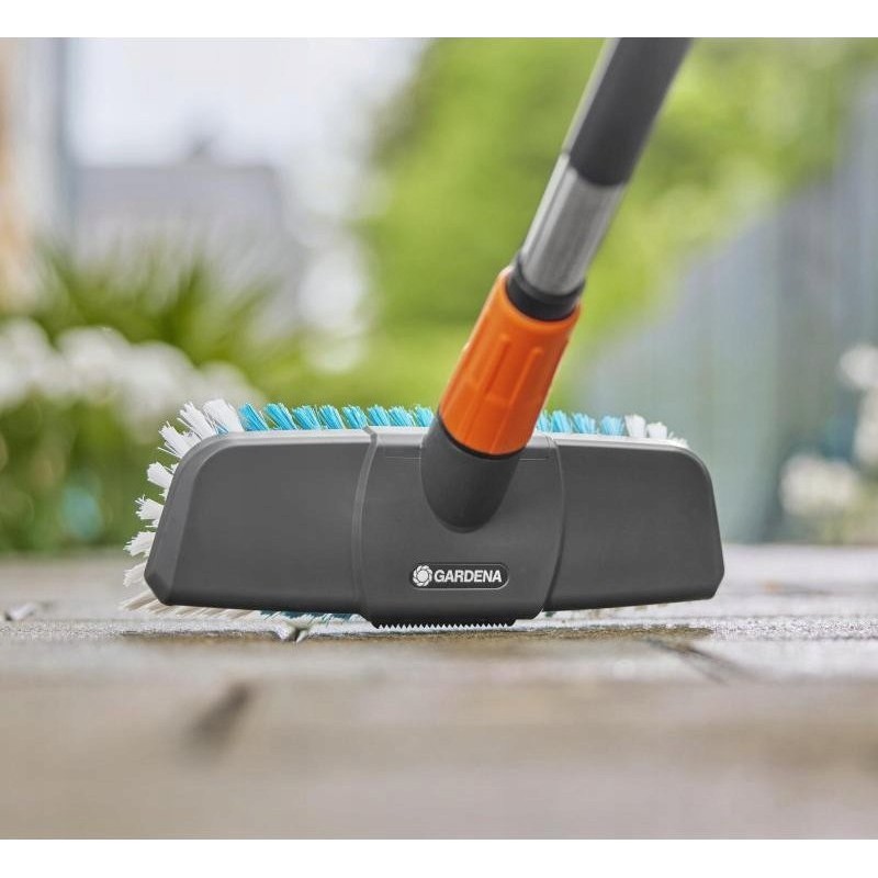 GARDENA Cleansystem to zestaw szczotek do mycia twardych powierzchni. Doskonale sprawdza się w skutecznym czyszczeniu większych, mniej wrażliwych powierzchni, takich jak wjazdy do garażu.