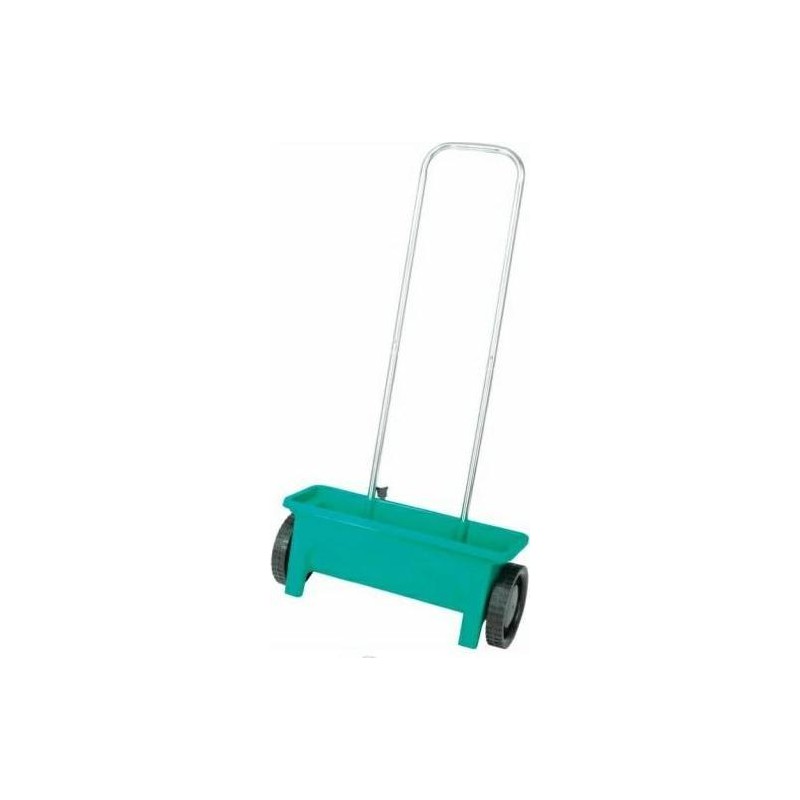 Siewnik wykonany z tworzywa sztucznego. Rączki aluminiowe śr. 19 mm. Siewnik posiada możliwość regulacji ilości wysiewanego materiału. Solidne koła ułatwiają prace na nierównym podłożu.