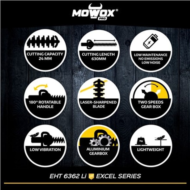 Mowox MoWox | 62V Excel Series Hand Held Battery Hedge Trimmer With Rotating Handle | EHT 6362 Li | Cordless