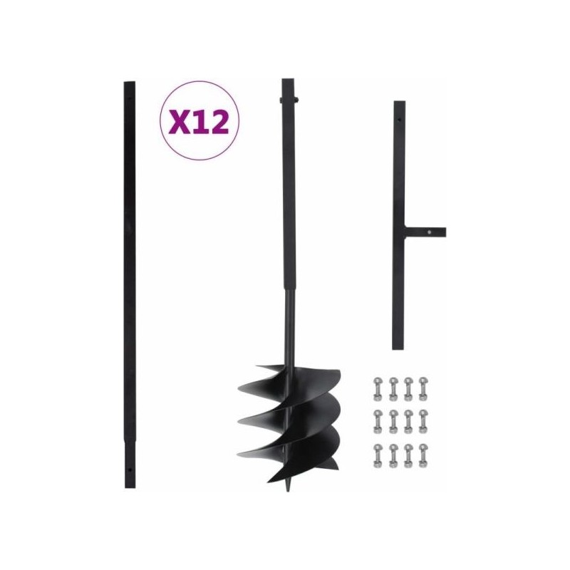 Dostawa obejmuje wiertło gruntowe, uchwyt, 12 rur przedłużających i śruby.
