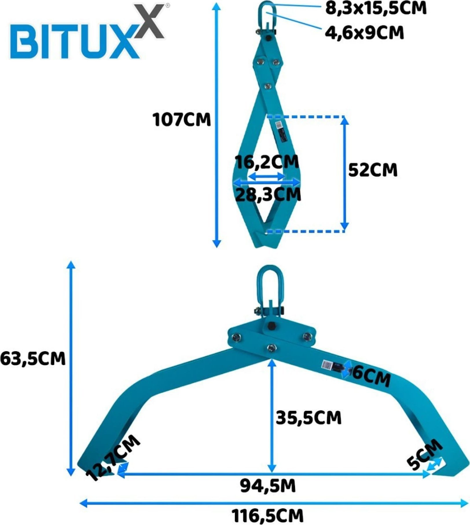 Bituxx Załadunkowy chwytak do drewna do transportu 850mm 1500kg do pni bali
