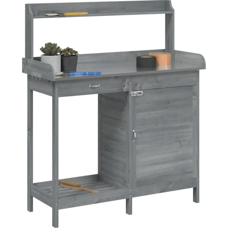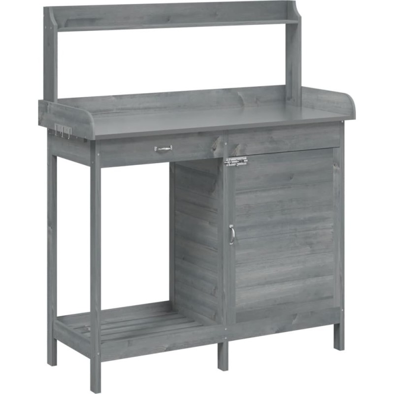 vidaXL Stolik do przesadzania roślin z szafką, szary, 110,5x45x124,5cm