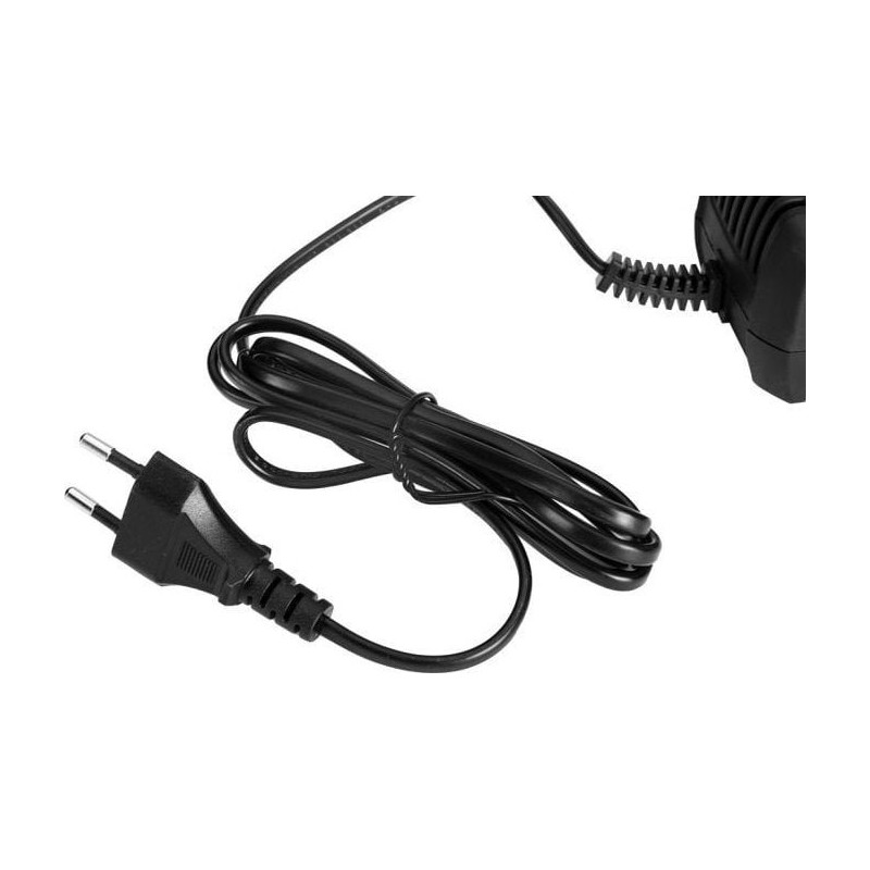 Ładowarka wyposażona została w system kontroli napięcia oraz temperatury, zapobiegający przegrzewaniu się urządzenia. Dodatkowo, posiada elastyczny oraz wytrzymały przewód zasilający o długości 2 m.