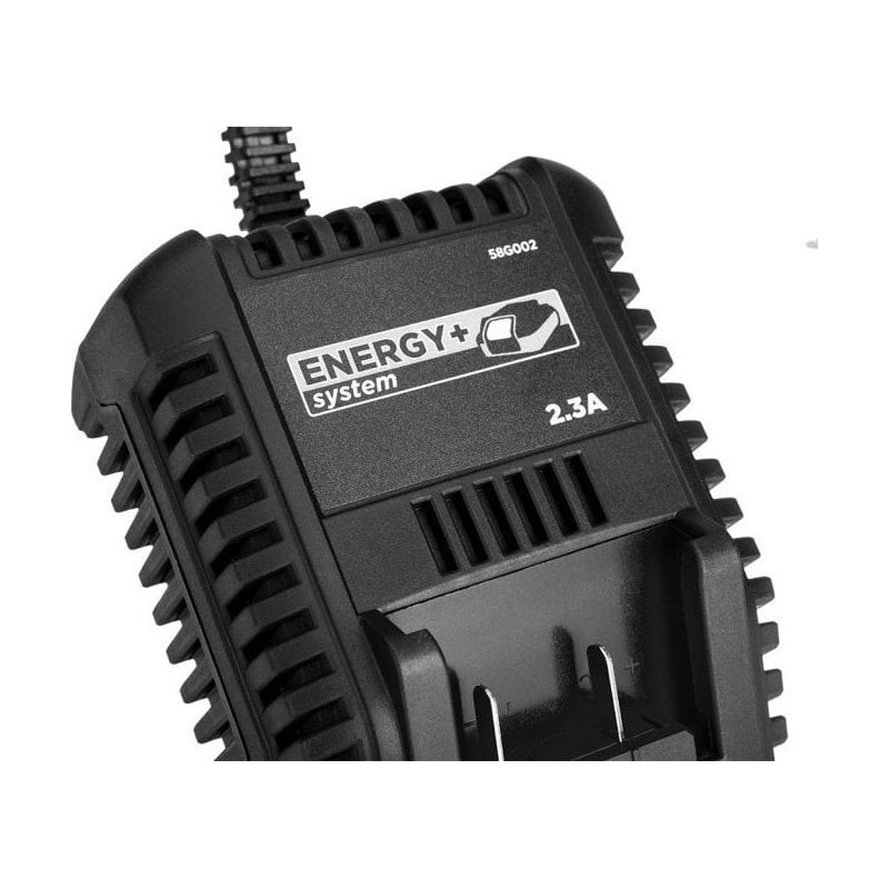 ładowarka do akumulatorów Energy+ 58G002 GRAPHITE to urządzenie umożliwiające ładowanie akumulatorów serii Energy+, bez utraty ich pojemności. Ładowarka dedykowana jest maksymalnemu przepływowi prądu 2,3A. Przeznaczona do akumulatorów litowo-jonowych z napięciem 18 V. Napięcie ładowania wynosi 22 V, a zasilania 230 V~50 Hz. Postęp sygnalizowany jest za pośrednictwem praktycznej diody, informującej o podłączeniu urządzenia do sieci, trwającym ładowaniu oraz zakończeniu ładowania.