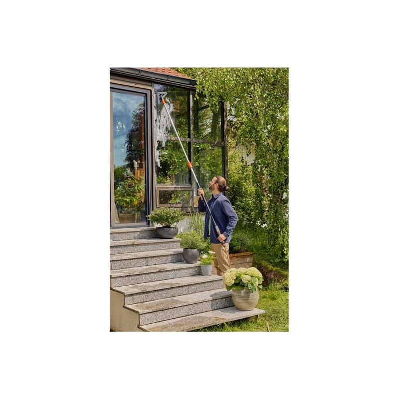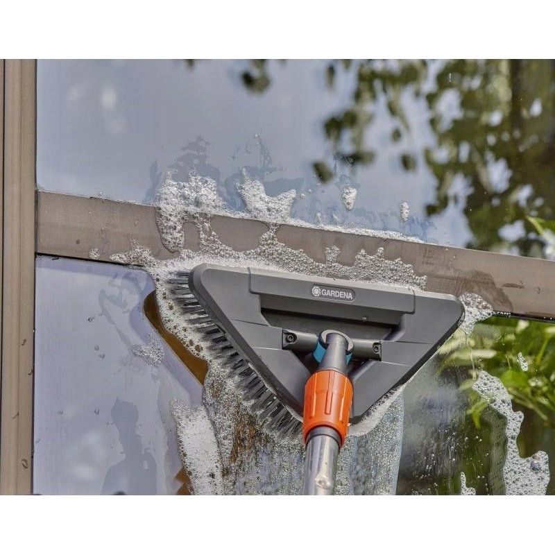 Wyjątkowo delikatna miękka szczotka do mycia Gardena CleanSystem Flex doskonale nadaje się do delikatnego czyszczenia większych, trudno dostępnych powierzchni, takich jak pergole.