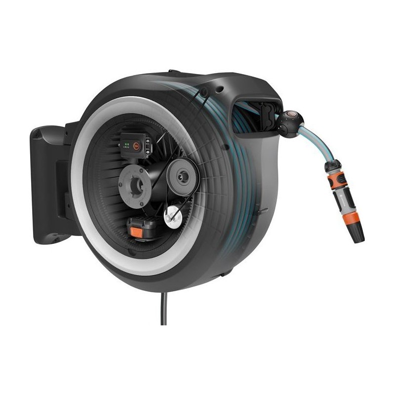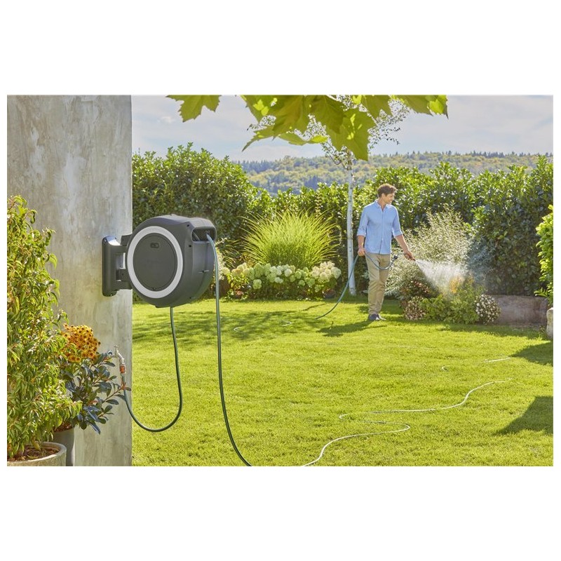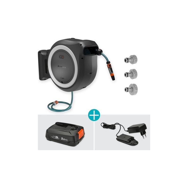 Gardena GARDENA battery-powered wall hose box PowerRoll XL 18V P4A, 35 meters, hose reel (grey/white, Li-Ion battery 2.5Ah, POWE