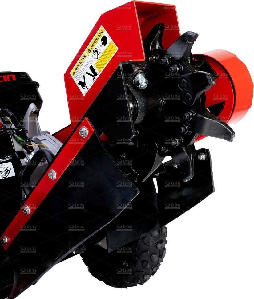 Frezarka, karczownik CEDRUS FR01 przeznaczony jest do frezowania i usuwania pniaków ściętych drzew. Umożliwia rozdrabnianie pnia do głębokości 235 mm. Tarcza frezująca napędzana jest przez silnik o mocy 15 KM zapewniający odpowiednią moc i moment obrotowy.