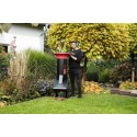 Solidna metalowa obudowa rozdrabniacza, wyposażona w dwa duże koła oraz uchwyt transportowy, zapewnia łatwość w przemieszczaniu urządzenia. Dzięki temu użytkownicy mogą swobodnie przenosić rozdrabniacz w różne miejsca w ogrodzie, co zwiększa komfort pracy.
