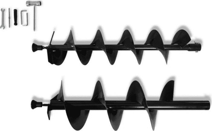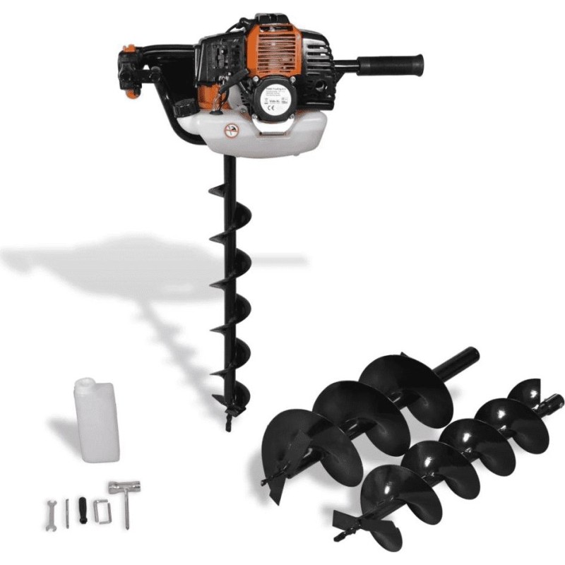 Świder spalinowy dostarczany jest wraz z 3 wiertłami do ziemi, 1 butelką na mieszankę spalinową, 1 zestawem do mocowania wiertła oraz 1 zestawem narzędzie. Załączone wiertła mają różne średnice, co umożliwia Ci wybór najlepszego do danej pracy.