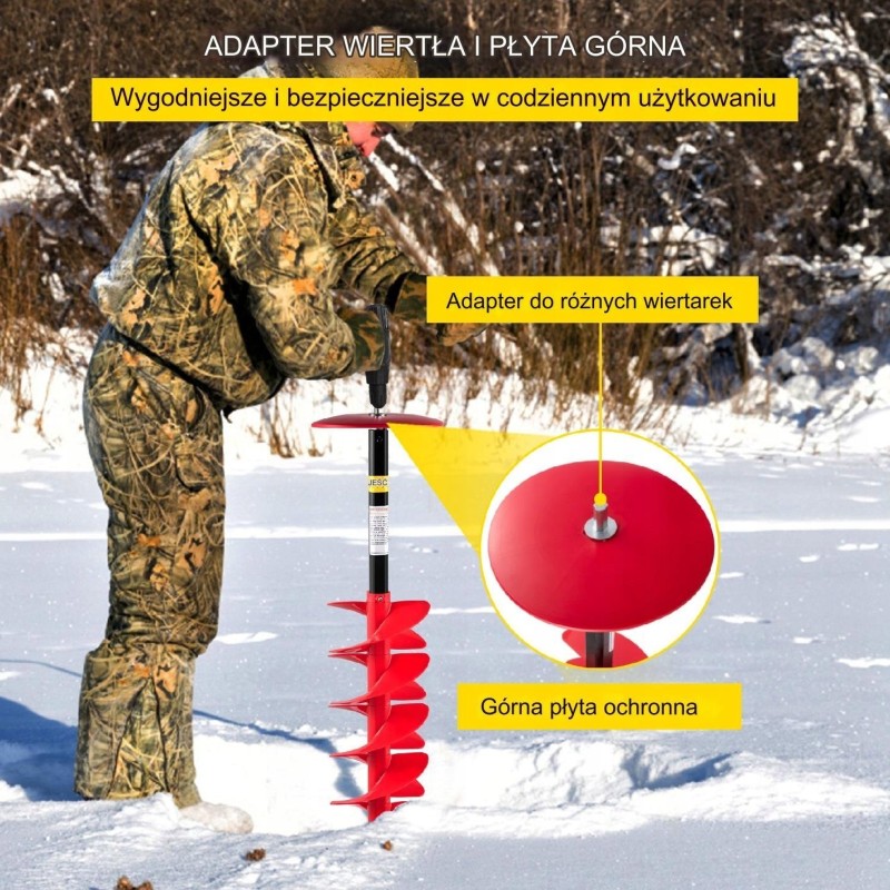 To wiertło lodowe jest bardzo odpowiednie dla miłośników łowienia podlodowego dzięki profesjonalnej konstrukcji i niewielkiej wadze. Może łatwo wiercić otwory o średnicy 20 cm w twardym i grubej powierzchni lodu, zapewniając wygodę i zabawę.