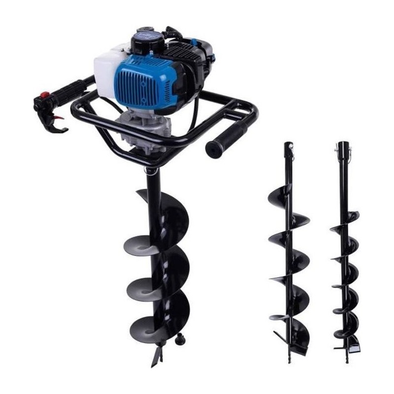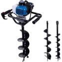 - Mocny silnik o mocy 1450 W wykonuje większość pracy za Ciebie i wbija wybrany świder o średnicy 100, 150 lub 200 mm bez wysiłku w ziemię na głębokość 800 mm.