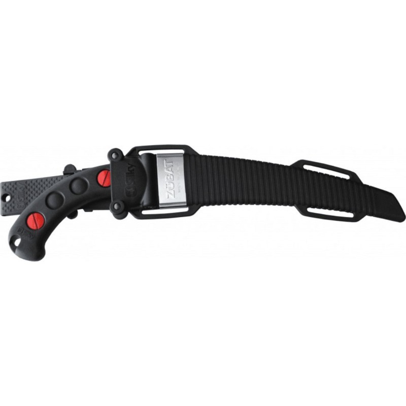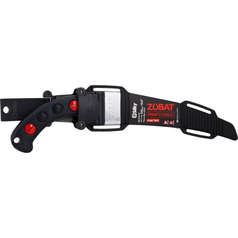 Pochwa piły ręcznej Silky Zübat została zaprojektowana w taki sposób, aby utrzymała piłę we wszystkich pozycjach. Nawet, jeśli obrócisz ją do góry nogami - piła nie wysunie się. Zapobiega temu specjalna blokada zamontowana na wejściu do pokrowca. Pochwa wyposażona jest również w dwie rolki, które zapobiegają uszkodzeniom, w trakcie wkładania piły do pokrowca. Dodatkowo w dolnej części obudowy znajduje się mały otwór, który ma za zadanie odprowadzać wilgoć i trociny. Na szczególną uwagę zasługuje również gumowy odlewany uchwyt piły. Wygodnie leży w dłoni, jest idealnie wyważony i pochłania wibracje.