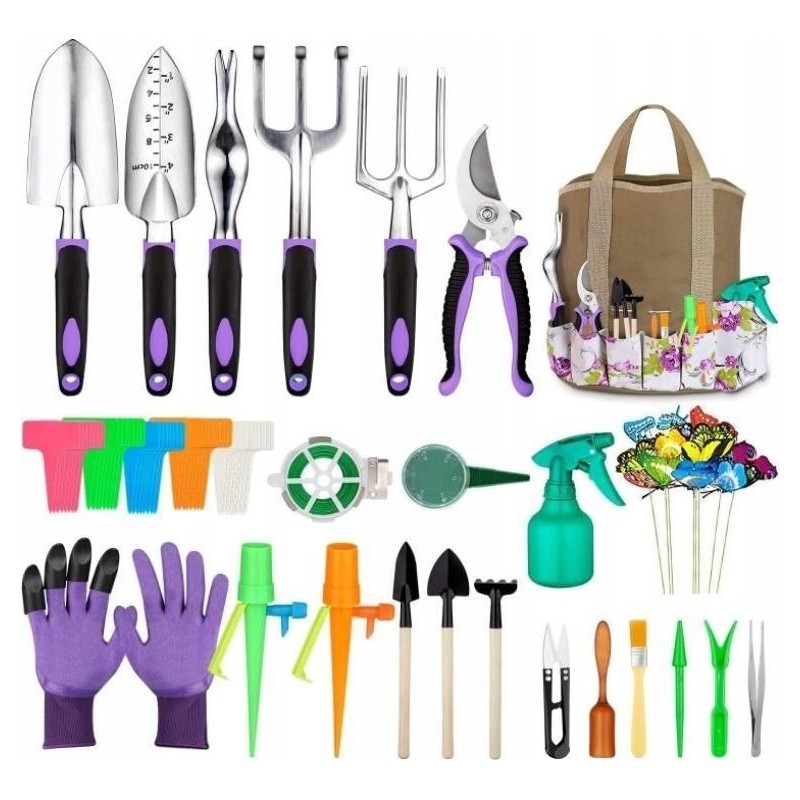 Zestaw narzędzi ogrodowych, 11-częściowy zestaw ze stali nierdzewnej - fioletowy