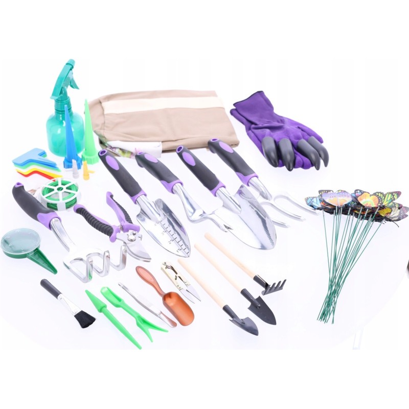 Zawiera torbę z kieszeniami, dzięki której narzędzia można łatwo przenosić. Zestaw narzędzi ogrodowych jest idealny do wielu prac, takich jak pielenie, grabienie, przesadzanie i przycinanie. Oprócz podstawowych narzędzi, zestaw zawiera również solidny sekator, opryskiwacz, rękawice z pazurami, chroniące dłonie przed skaleczeniem.