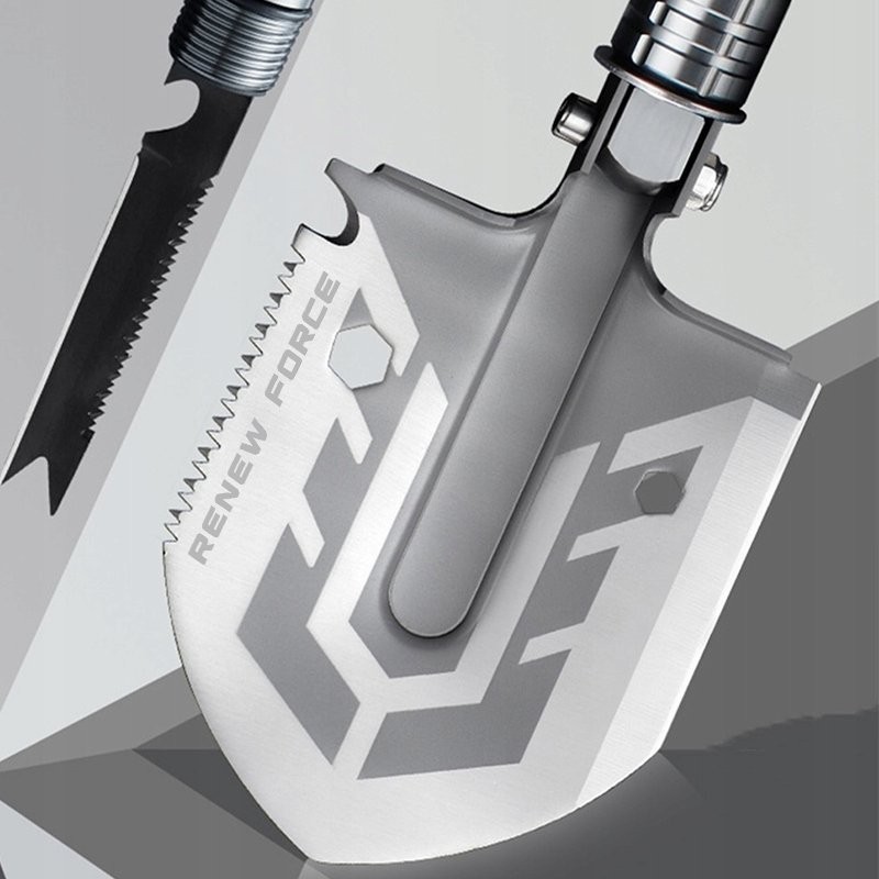 Produkt został wykonany z najwyższej jakości stali nierdzewnej i stopu aluminium, co sprawia, że jest wyjątkowo trwały i nie ulega uszkodzeniom. Budowa została zaprojektowana w taki sposób, aby narzędzie dobrze leżało w dłoniach, niezależnie od tego, jaką funkcję chcemy akurat użyć. Główka łopaty można regulować pod różnymi kątami, dostosowując ją do konkretnego zadania.