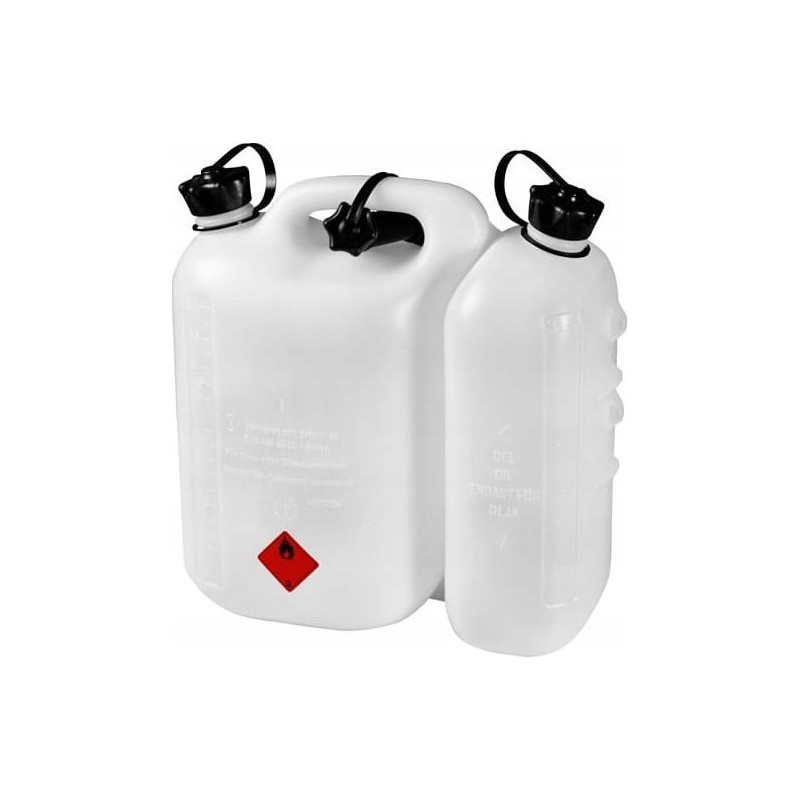 - Profesjonalny podwójny pojemnik na paliwo i olej do pił wykonany z materiału HDPE