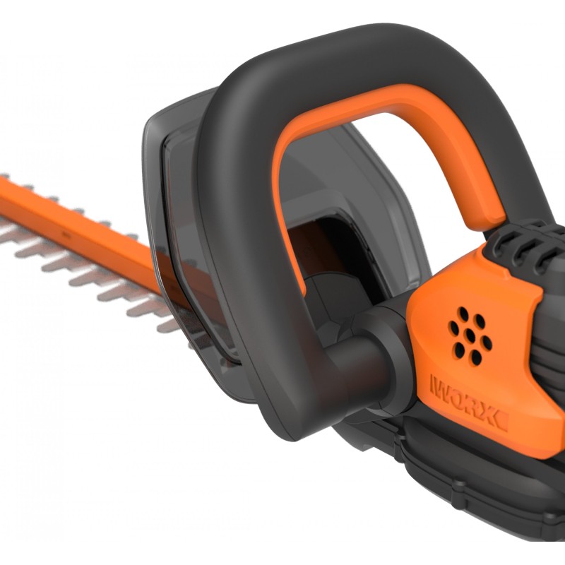 Precyzyjne nożyce akumulatorowe Worx wyposażone są w ostrze długości 45 cm, dzięki czemu nadają się do pracy również przy większych krzewach. Dwustronne ostrze przyspiesza efekty, a generuje mniej wibracji. Regulowana obrotowa rączka tylna pomaga ustawić najwygodniejszy kąt cięcia. Niewielka waga - 2,4 kg - i zgrabny projekt znacznie zwiększają komfort pracy. Wytrzymała osłona przedniej rączki zwiększa bezpieczeństwo i chroni przed ostrymi resztkami liści.