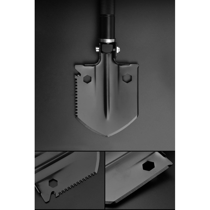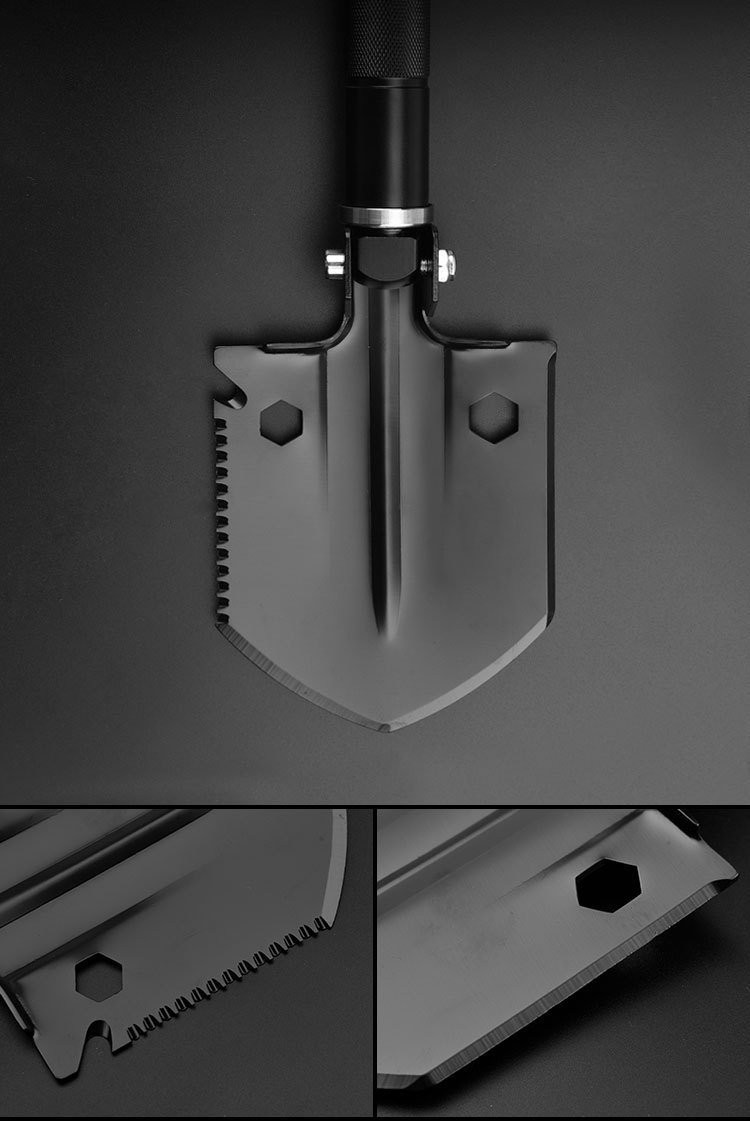 Produkt wykonany jest z najwyższej jakości stali nierdzewnej i aluminium, co daje mu trwałość, a nie zniszczy się po pierwszym użyciu podczas wędrówki. Konstrukcja łopaty została zaprojektowana tak, aby poręcznie leżała w dłoni niezależnie od tego, jakiej funkcji aktualnie używasz. Główkę łopaty można regulować pod różnymi kątami, w zależności od potrzeby.