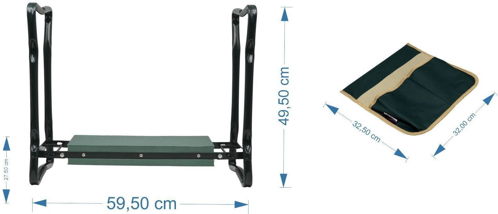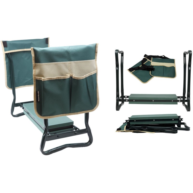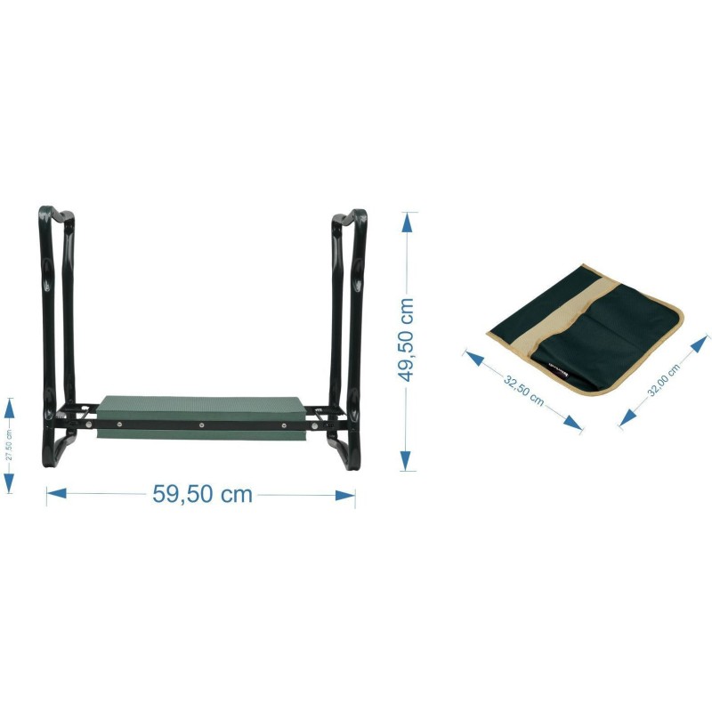 Klęcznik składany ogrodowy zielony z 2 torbami na narzędzia 4w1