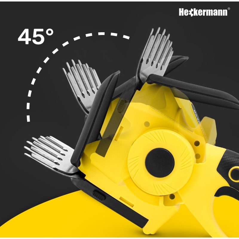 Nożyce akumulatorowe Heckermann AJNT20 charakteryzują się mocą 500 W oraz długością roboczą ostrza wynoszącą 23 cm. Dzięki temu, urządzenie osiąga prędkość 1500 ruchów tnących na minutę, co zapewnia szybkie i efektywne cięcie.