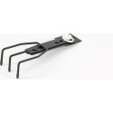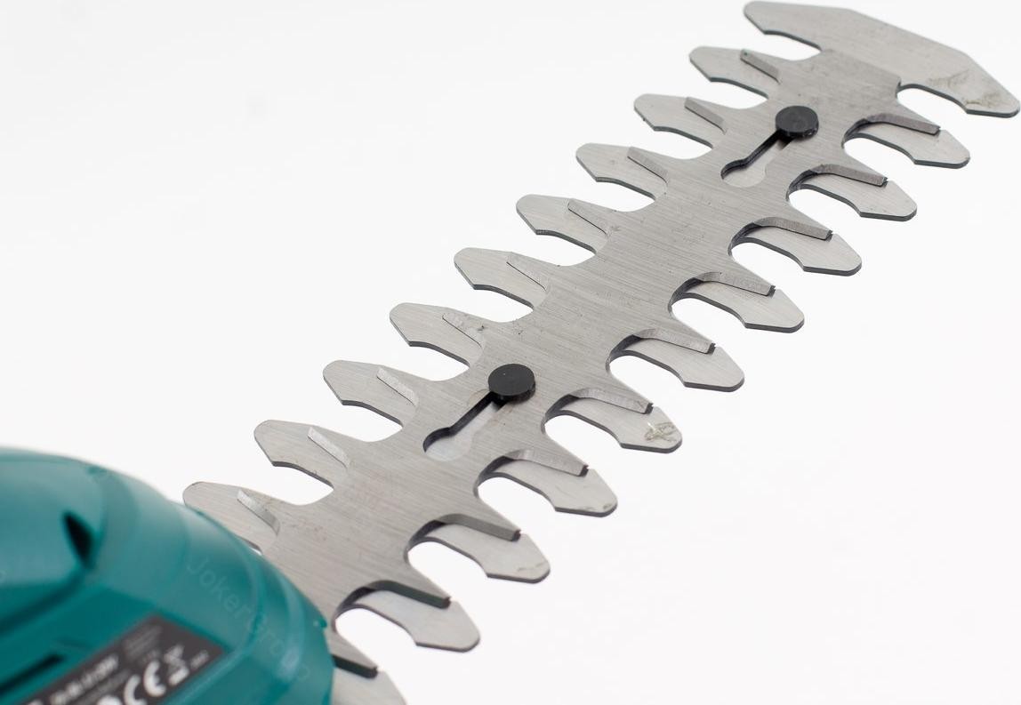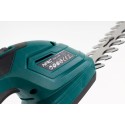 - Urządzenie zostało wyposażone w wygodną rękojeść, na której znajdują się niezbędne elementy do sterowania. W nożycach zastosowano podwójny włącznik, zabezpieczający przed niepożądanym uruchomieniem