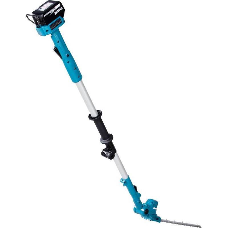 Nowe nożyce do żywopłotu DUN461, zasilane akumulatorem Li-Ion 18 V LXT® firmy Makita, wyposażone są w ostrze tnące o długości 46 cm i są idealne do przycinania wysokich i trudno dostępnych żywopłotów. 10 stopniowa regulacja ustawienia kąta głowicy tnącej (regulacja w zakresie od 60° w górę do 75° w dół - co 15°) pozwala na pracę i przycinanie w różnych pozycjach. Teleskopowa konstrukcja, pozwala beznarzędziowo regulować długość całkowitą urządzenia, w zależności od potrzeb. Możliwość złożenia i skrócenia w celu łatwiejszego transportu i przechowywania. Posiada przycisk blokady włącznika dostępny z obu stron narzędzia.