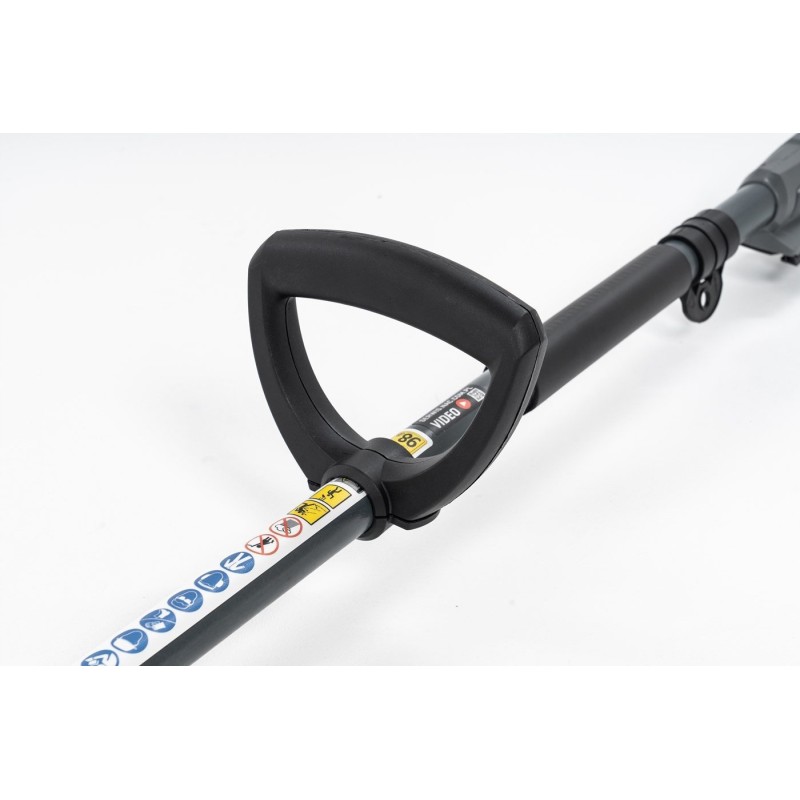 Urządzenie zasilane jest akumulatorem litowo-jonowym, co eliminuje konieczność korzystania z kabli oraz paliwa, czyniąc je przyjaznym dla środowiska. Akumulator zapewnia dłuższy czas pracy oraz cichą, ekologiczną obsługę, co sprawia, że prace ogrodowe stają się bardziej komfortowe.