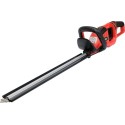 Akumulatorowe nożyce do żywopłotu zasilane dwoma akumulatorami 18V, napędzane silnikiem bezszczotkowym. Dają użytkownikowi moc często przewyższającą siłę silników spalinowych, cichą pracę i wolność od uciążliwego przedłużacza nożyc elektrycznych. Wysoka prędkość noży tnących znacznie ułatwia pracę ze świeżymi pędami i gałęziami o grubości do 28 mm. Ostrze o długości 22" cięte laserowo z osłoną T. Obrotowy uchwyt umożliwia użytkownikowi wybranie wygodnej płaszczyzny cięcia. Miękki gumowany uchwyt zapewnia pewne trzymanie narzędzia podczas pracy. Przechowywanie ułatwia wieszak umieszczony na końcu nożyc. Na dwóch akumulatorach 4 Ah nożyce pracują około 1 h.