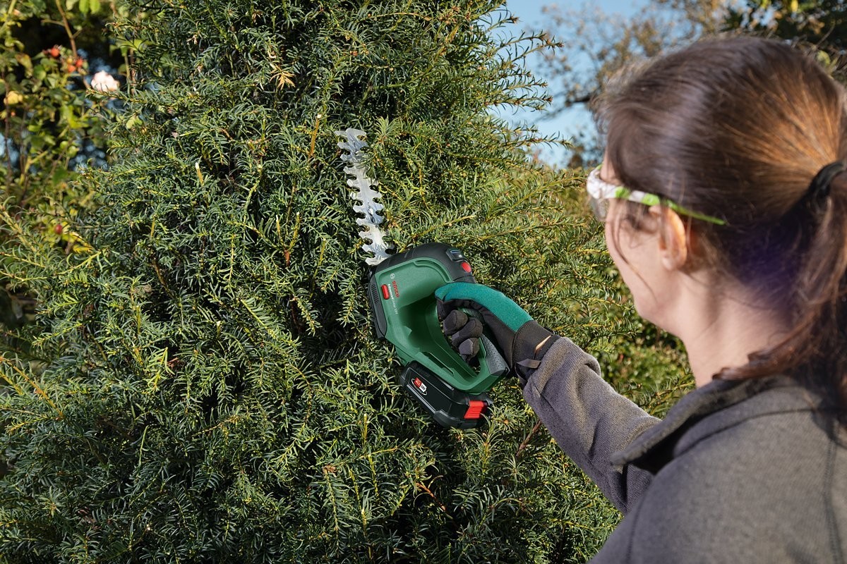 Obsługa jedną ręką: idealne do kształtowania i przycinania młodych żywopłotów lub trawy