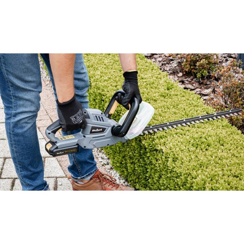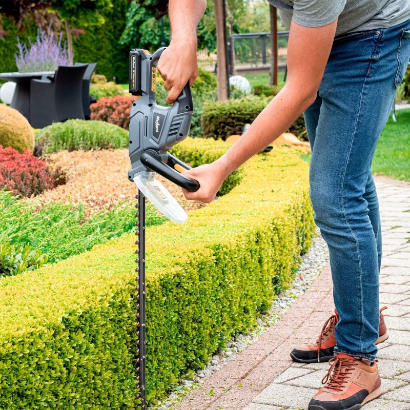 Akumulatorowe nożyce do żywopłotu z serii Rebel Tools to niezastąpione narzędzie do pielęgnacji ogrodu, zaprojektowane z myślą o wygodzie i efektywności pracy. Dzięki wycinanemu laserowo stalowemu ostrzu, urządzenie zapewnia precyzyjne i czyste cięcie, co pozwala na łatwe formowanie i przycinanie żywopłotów oraz krzewów.