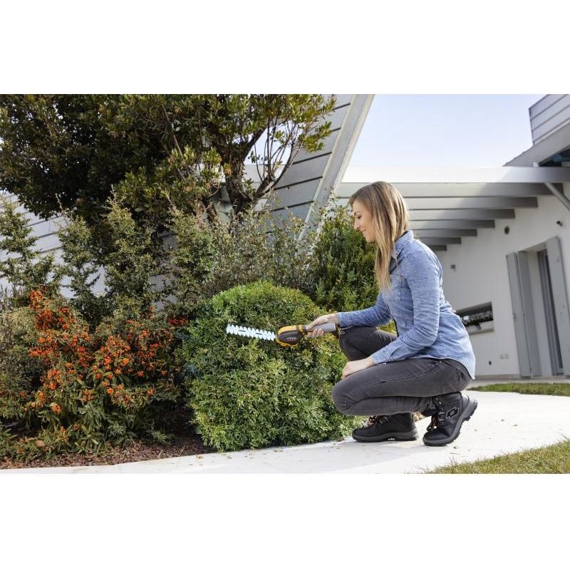 Nożyce akumulatorowe SGM 102 AE to lekkie, wielofunkcyjne urządzenie zasilane akumulatorowo. Wyposażone w innowacyjny obrotowy uchwyt o kącie obrotu 180 ° zapewniającym doskonałą kontrolę i wygodę. SGM 102 AE zawiera nożyce do krzewów o średnicy 18 cm przeznaczone do precyzyjnego cięcia twojego żywopłotu oraz 10-centymetrowe ostrze, które idealnie nadaje się do doskonalenia krawędzi trawnika w Twoim ogrodzie.