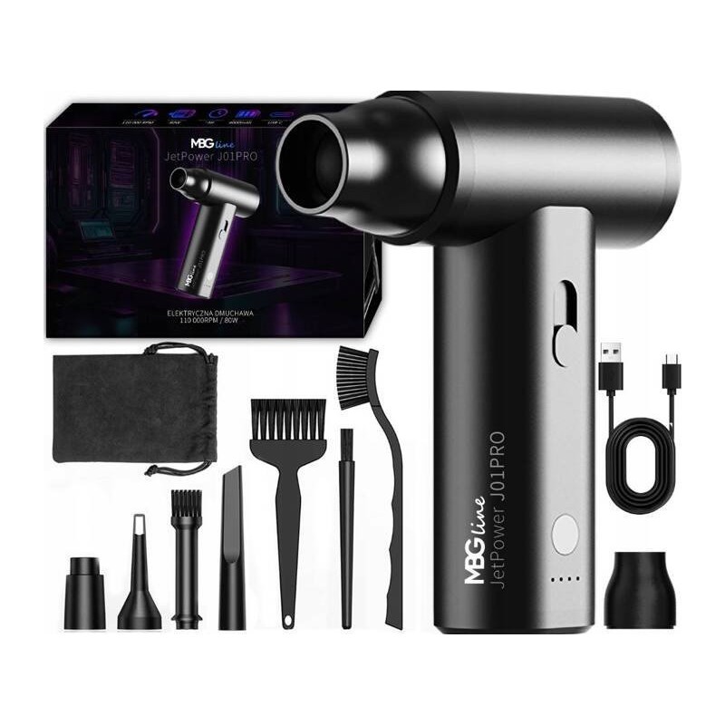 Dmuchawa elektryczna MBG line JetPower J01PRO to niezastąpione narzędzie dla miłośników technologii, zapewniające łatwe utrzymanie czystości w komputerze i innych urządzeniach elektronicznych.